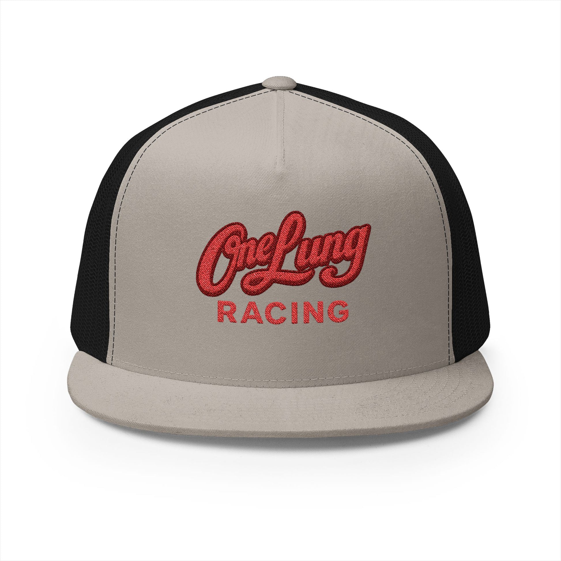 Top off your moto fit with the One Lung Racing Trucker Hat – featuring bold red puff embroidery that pops off a classic black-and-white trucker frame. Built for garage sessions, track days, and gas station flexes, this cap delivers old-school attitude with modern snapback comfort.